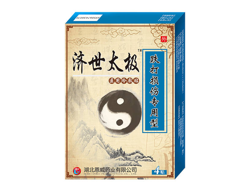 - 產品介紹【產品名稱】濟世太極跌打損傷專用型【產品備案憑證編號】鄂漢械備20170073號【型號規格】4貼/盒、2貼/袋,(80±8mm)×(90±8mm)【適用[查看詳情]