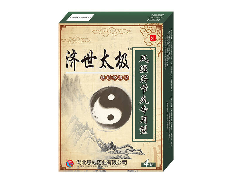 - 產品介紹【產品名稱】濟世太極風濕關節炎專用型【產品備案憑證編號】鄂漢械備20170073號【型號規格】4貼/盒、2貼/袋,(80±8mm)×(90±8mm)【適[查看詳情]